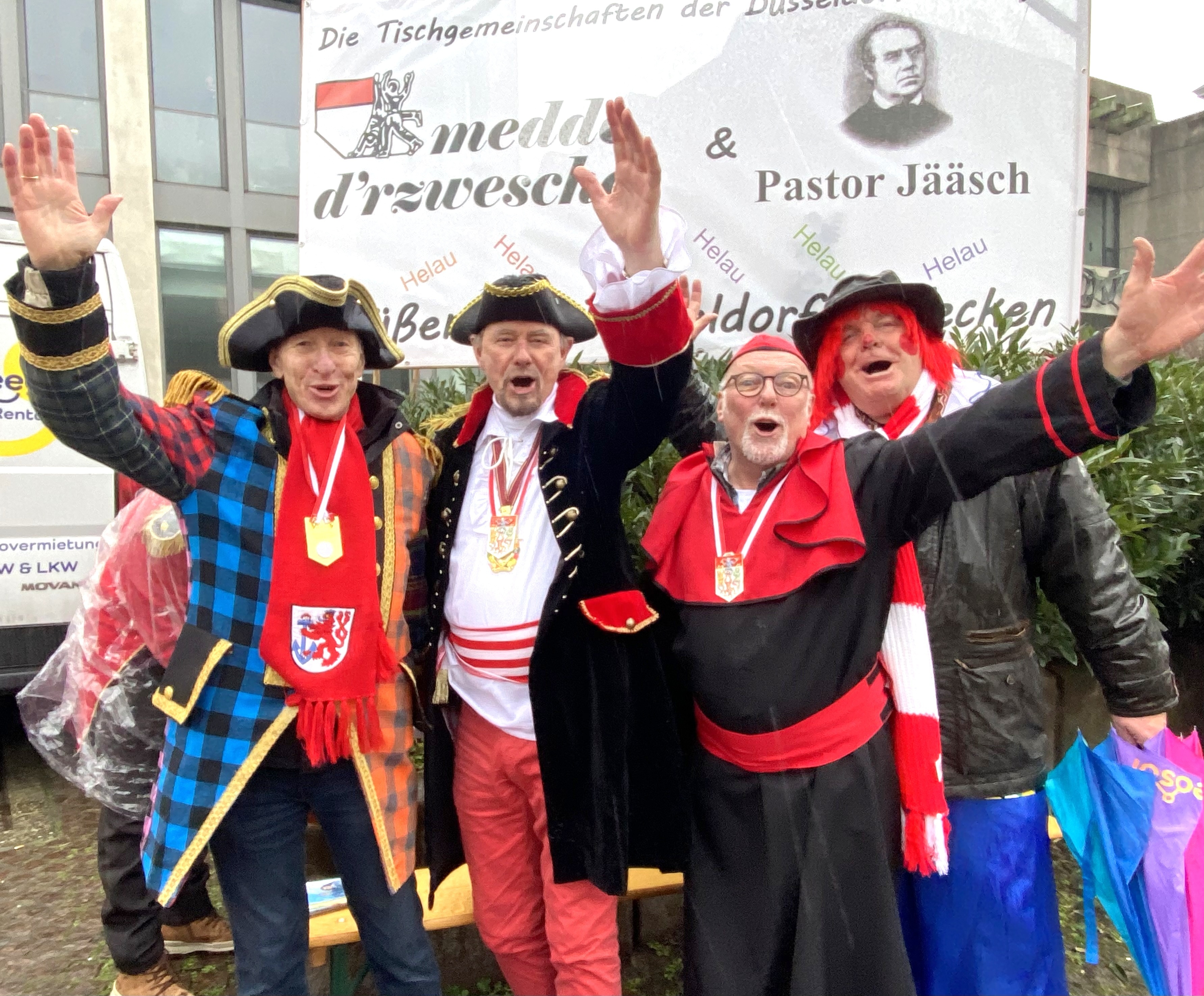 Am Rosenmontag laden die Tischgemeinschaften Medde d'rzwesche und Pastor Jääsch auf den Stand am Grabbeplatz ein.