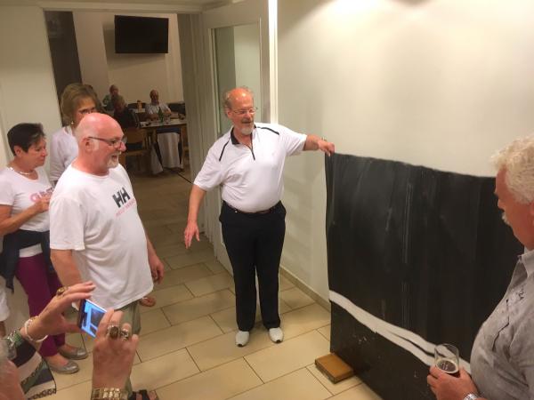 Unser Tischfreund Norbert, seines Zeichens Metallbauer, hat mal wieder gebastelt und ein Metall-Relief des Paul-Gerhardt-Hauses geschaffen. Jörg nahm das Kunstwerk unter tosendem Applaus begeistert an.